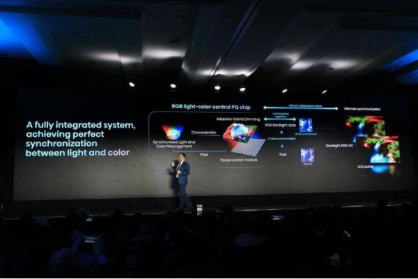 相比之下,RGB三维控色液晶显示技术采用了RGB光源并且能实现分区控光控色,可以通过独立控制RGB三色光源的发光亮度,混合产生所需亮度和丰富颜色,无需二次色彩转换,真正做到“三基色生万亿色”。另外相较于普通光源,RGB三维控色液晶显示技术在二维分区(空间)亮度控制的基础上,增加了色度维度的控制,从单一的控光进化为光色同控,形成了一次重大的技术升级。