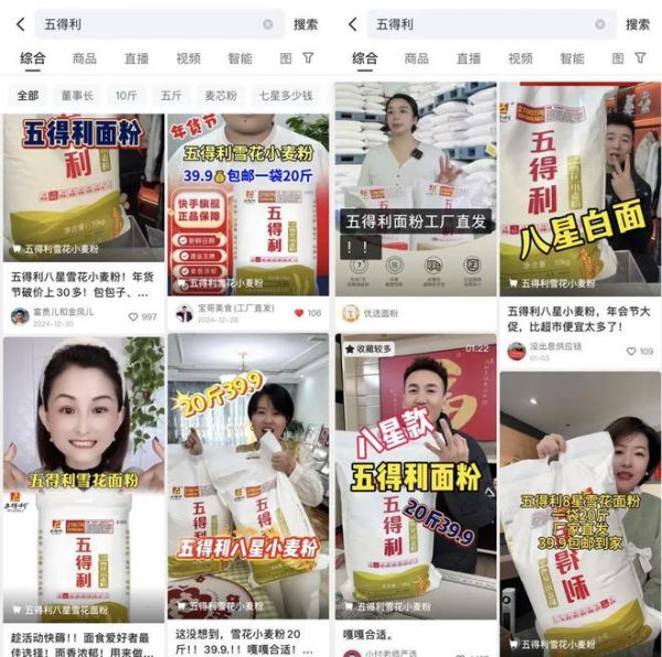 年货节期间,谢广坤卖出了350万斤五得利面粉,GMV超800万。带货成绩远超达人预期,也远超品牌预期。五得利面粉卖爆后,其他达人也看到了商品的潜力,开始主动与平台沟通,要引入五得利进入自己的直播间。