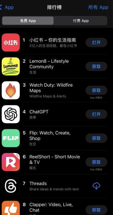 紧接着,小红书在短短一天时间内拿下AppStore的美区排行榜榜首,成为仅有的中文APP。