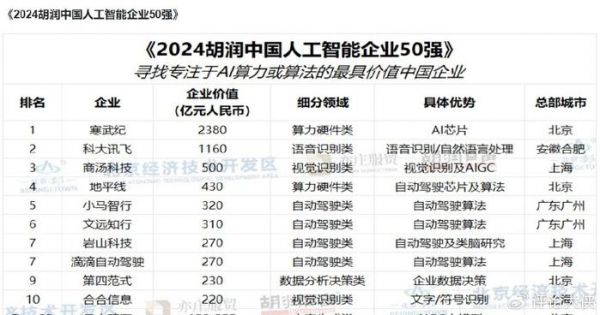 近两年,人工智能(AI)技术正以前所未有的速度改变着我们的世界,同时也是最具潜力的创业赛道之一。2025年1月,胡润研究院发布了备受瞩目的《2024胡润中国人工智能企业50强》榜单,为业界提供了一份关于中国AI发展的详实指南。这一榜单揭示了AI在中国的发展现状,也为未来的趋势提供了重要线索。