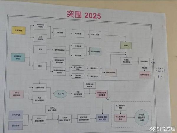 ▲蔡磊家中客厅墙上挂着2025年渐冻症科研AI大脑的计划。新京报记者 郭懿萌 摄