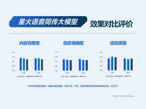 科大讯飞表示:“技术测试结果显示,即便将讯飞的语音同传技术和国外最优竞品的交传技术对比,讯飞语音同传在内容完整度、信息准确度以及语言质量上都处于领先水平。”