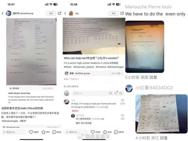 中国学生还利用这一平台向外国用户请教英语作业,而一些外国用户则向中国用户请教数学作业,评论区立马变成“在线外教一对一”教学现场。