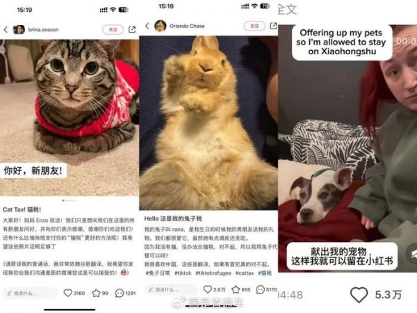 一些美国用户通过发布萌宠照片(“猫咪税”“兔兔税”“狗狗税”)与中国网友互动,可爱度爆表!