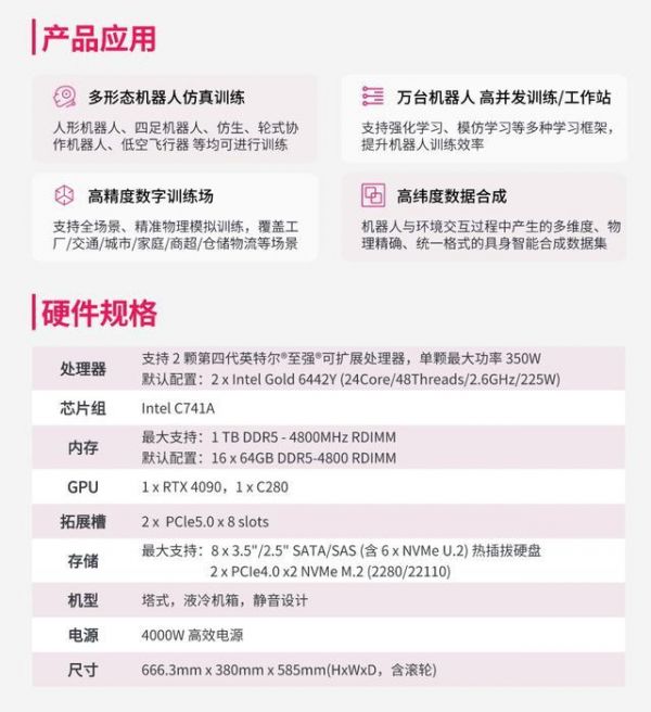 中国首款专为具身智能机器人仿真训练与合成数据生成而打造的一体机,开创人工智能与物理世界融合的全新局面。