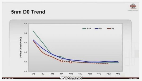 在实际情况中defect的概率并不是一个很好拿来计算的指标,所以一般情况下我们使用基本等价的指标缺陷密度D0(defect density)来表述良率。 D0是指,每单位面积(通常是100mm2)内出现致命缺陷的平均数量,这个相当于缺陷概率在特定面积内的期望值,属于等价指标。 注意这里说的是D0是一个预期的期望,是大量芯片下的平均值,假设D0=0.4,那么不是说单位面积下一定有0.4个缺陷。 一个芯片可能有0个,1个,2个,3个....... 只是总体情况下,平均期望值是0.4个。因此,面积无关的D0是正规场合下描述芯片良率的常用指标,例如台积电在说明他们良率的时候,用的就是D0。