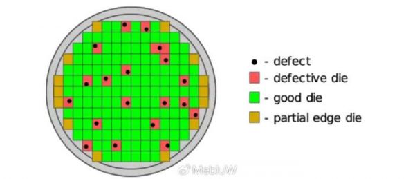 因此,真正衡量工艺良率的指标应该是defect出现的概率,defect 概率越小,那么一个Die内出现Defect的概率对应就越小。而当Defect的概率一致时,一个Die越大那么出现Defect的概率就越大。