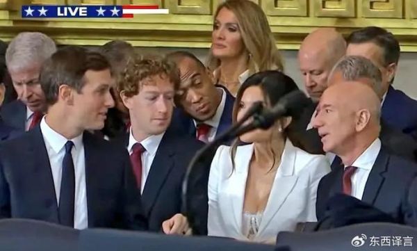虽说之后库什纳的目光移开了,和贝索斯聊了起来,但一头小卷发的扎克伯格却似乎很难移开他的眼神。