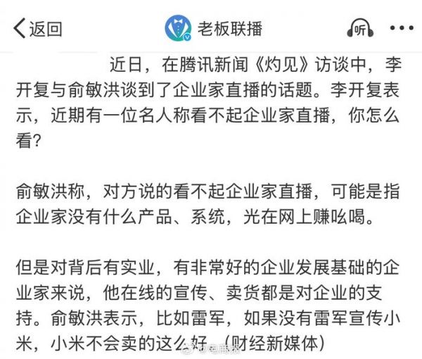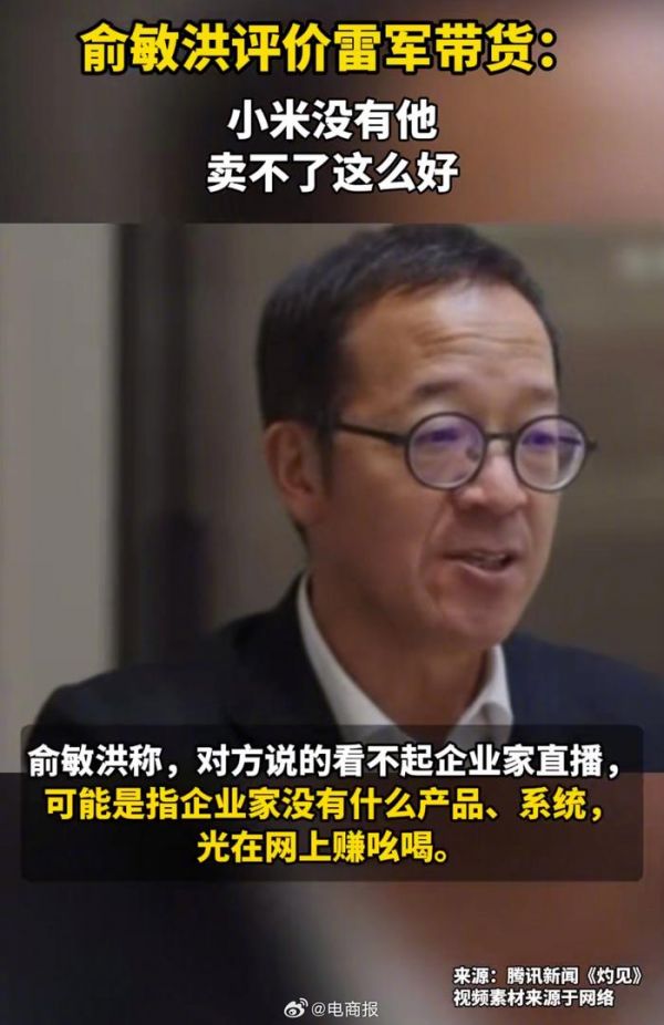 #俞敏洪称没雷军小米卖不了这么好# 俞敏洪谈雷军直播:小米没雷军,卖不了这么好。