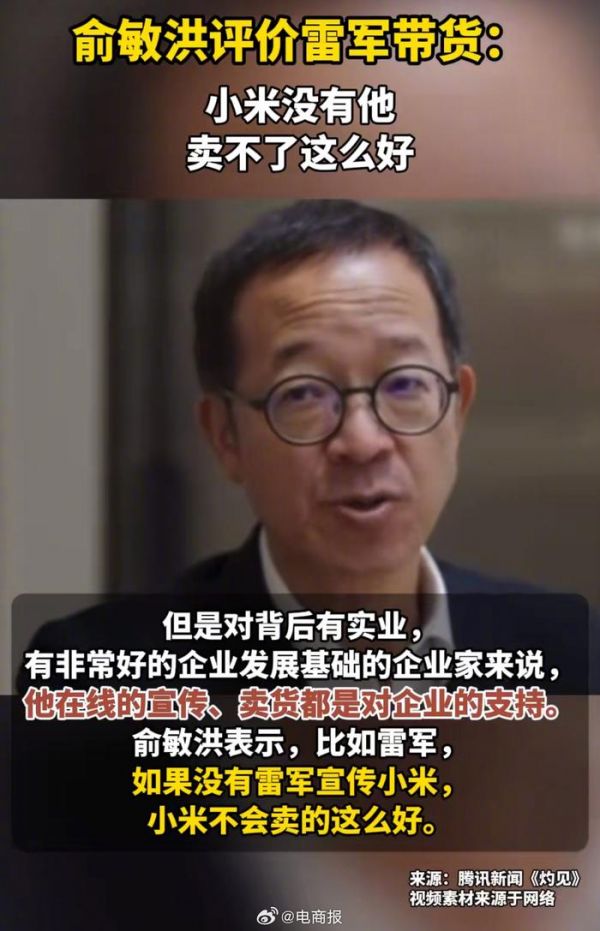 俞敏洪谈雷军直播:小米没雷军,卖不了这么好