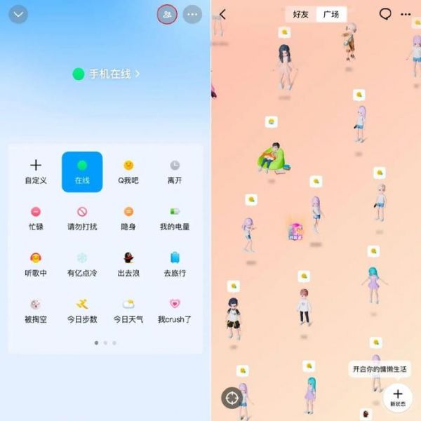 然而,该功能在实际使用中却存在一些问题,其中较为突出的就是其入口较深。用户需要先进入QQ顶部的状态选择界面,接着点击右上角的图标,然后在新出现的页面中才能找到“广场”入口,这在一定程度上影响了用户的使用体验和该功能的活跃度。