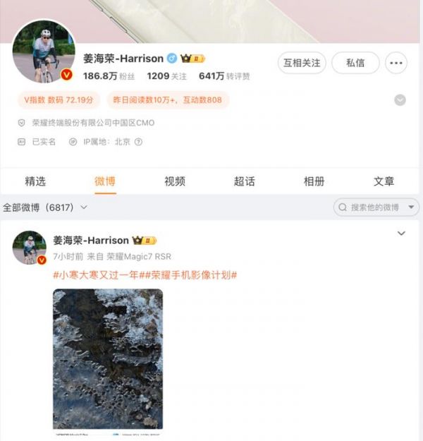 作为补充,前几天姜海荣还转发赵明的告别信称“祝福明哥!祝福荣耀!” 当时就有网友猜测海荣哥是不是也要走了,感觉“祝福荣耀”这句有点弦外之音的意思。目前姜海荣微博账号最后一条内容更新于1月20日10:48,微博认证还是荣耀终端股份有限公司中国区CMO。大家对姜海荣有什么印象?