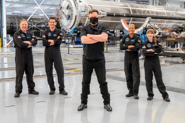 图4 马斯克(中)和艾萨克曼(左二)(图源:SpaceX)