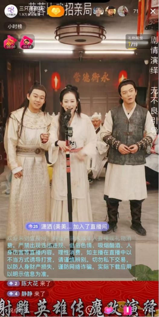 1月14日,抖音账号“三只羊剧场”更新了一则视频,宣布即将上架短剧《我们一起养老吧》,号称首部直播互动剧。四天后,该账号又更新两条跳舞视频,定位于横店影视城。