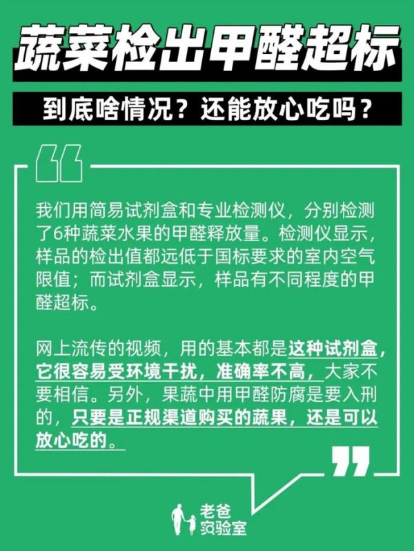 而至于所谓的“车厘子泡甲醛”,也是一种经久不衰的蔬果恐慌了。据老爸测评,首先,很多生物代谢会产生极微量的内源性甲醛,几乎没有影响;其次,大部分所谓的测试,都是用检测空气的试剂盒,试剂盒不准,且检测方法本身错误。