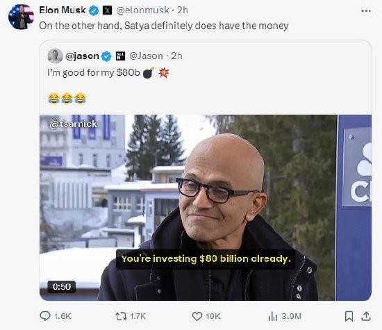 微软CEO回应马斯克“星际之门没钱”言论:我有我的800亿美元