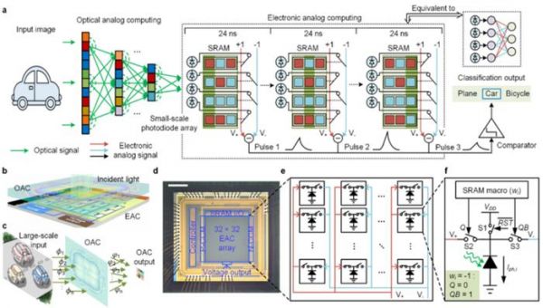 清华大学:提出ACCEL芯片(图3)。该光电设计采用衍射神经网络进行视觉特征提取,并在单个集成设备上结合了衍射光学计算与模拟电子处理。