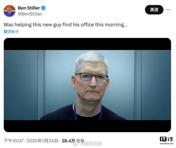 《人生切割术》的执行制片人本・斯蒂勒今晚在平台发布了一段短视频,展示了苹果 CEO 蒂姆・库克到访卢蒙工业公司的情景。他乘坐电梯进入办公室,接受了“切割术”程序,这个程序会将他的记忆分割成工作和私人生活两部分。库克以“内在自我”的身份进入分割区域,佩戴着名为“Tim C.”的标签。
