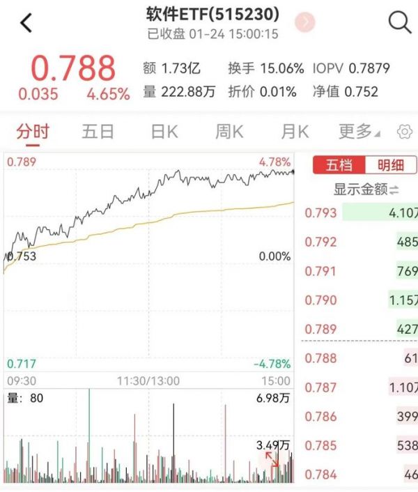 软件ETF(515230)收盘大涨4.65%