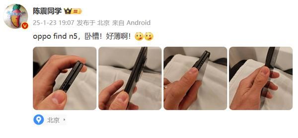据悉,昨日他在微博上晒出了OPPO Find N5折叠屏手机的真机照片,这款手机尚未正式发布,依旧处于保密状态,于是这一出被不少业内人士形容为“踩爆了水管”。