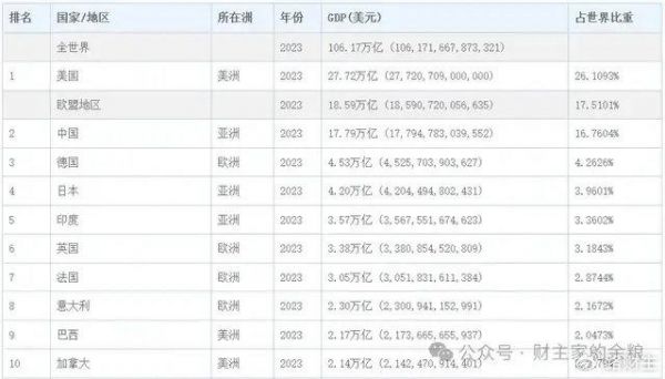 现在呢?美国2023年的GDP是28万亿美元,世界GDP是106万亿美元。