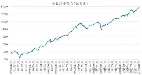 再往前推,1970年的时候,全部美股总市值也只有8000亿美元,比起来让人唏嘘感慨,2000年3月份的时候,美股总市值大约在14.3万亿美元,而现在,美股总市值是60.3万亿美元!