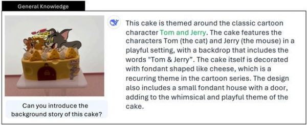 作为一个多模态模型,Janus-Pro不仅可以“文生图”,同样也能对图片进行描述,识别地标景点(例如杭州的西湖),识别图像中的文字,并能对图片中的知识(例如下图中的“猫和老鼠”蛋糕)进行介绍。