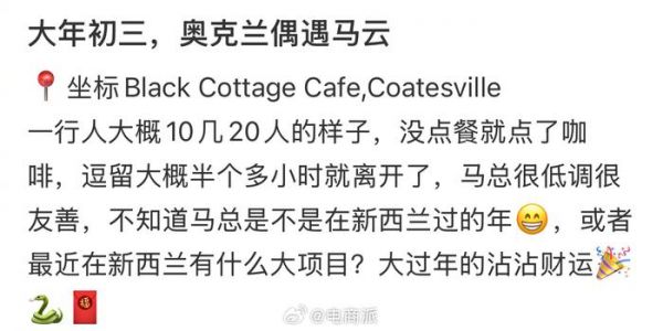 马云现身新西兰咖啡店,网友:很低调很友善。