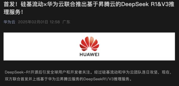 DeepSeekR1使用英伟达H800 GPU进行训练,此前有分析师Alexander Doria推测,DeepSeek在推理阶段主要依赖华为自研的Ascend AI加速器,以降低成本并减少对西方硬件的依赖,这次也算是某种程度上的“官宣”了。