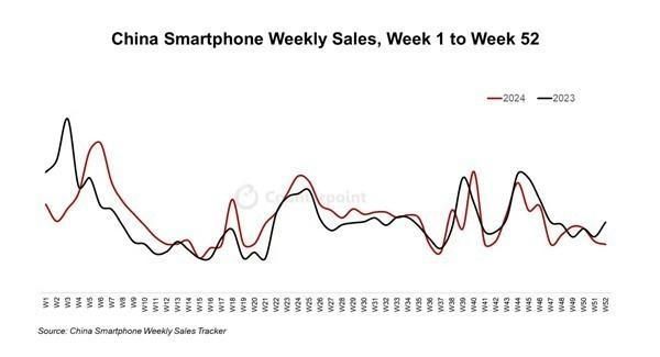 根据调研机构CounterPoint Research最新报告,2024年中国智能手机销量同比增长1.5%。市场表现不均衡,年初和年末都相对疲软,不及上年同期;不过,从第5周到第36周,销量普遍好于去年同期。具体的到手机厂商,华为手机去年同比增长高达 36%,成为真正的赢家。