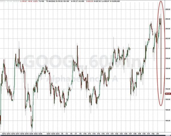 财报公布后,收涨2.5%的Alphabet股价盘后跳水,盘后一度跌超9%。