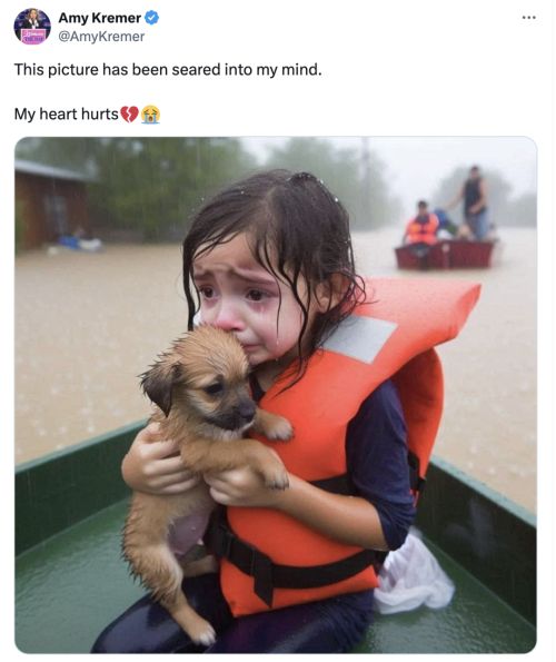 不仅仅是在长辈之间,类似的问题早已蔓延至整个互联网——无论是海外曾在社交媒体上掀起飓风的AI生成图“飓风中的小女孩”,还是近期西藏日喀则地震后在国内社交媒体疯传的“被压废墟下的小男孩”,都是AI虚假内容生成、引发社会争议的负面典型案例。
