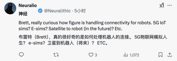 不过,随着DeepSeek这波开源浪潮的爆发,网友认为Figure可能转向采用DeepSeek等开源AI模型。也有网友好奇,Figure未来将会如何解决机器人在5G物联网、电子卡槽,乃至未来卫星通信等方面的技术难题。