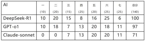 4.如果将 AI 的成绩与人类成绩相比较,则 DeepSeek-R1 可以进入前三名(获特优奖),但与人类的最高分 125 分仍有较大差距;GPT-o1 进入前五名(获特优奖),Claude-sonnet 前十名(获优秀奖)。