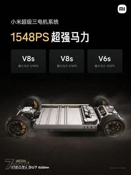 在「小米超级三电机」加持下,这车马力能达到1548PS,零百加速1.98秒。