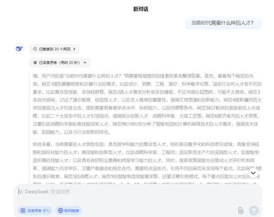 DeepSeek和ChatGPT也许很相似,也有一些地方还有不及,但有一点“不同”,却对我们国人非常之重要,影响将很深远。这就是DeepSeek设置了一个“深度思考”的显性内容。它并不是对你提问或指令的直接回答,而是在回答之前的一段甚至比回答更长的灰色文字。