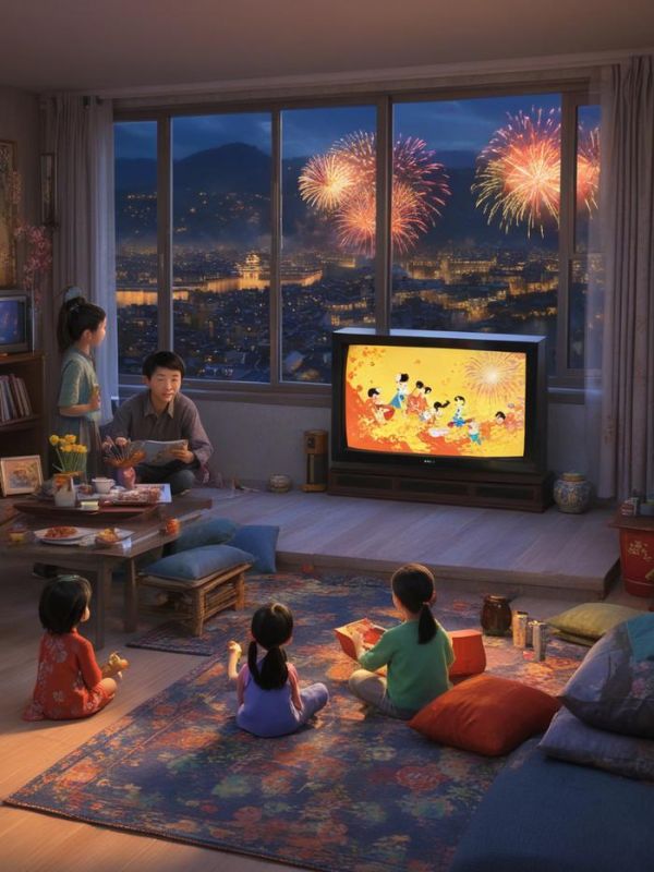 家人一起观看电视。新京报贝壳财经记者AI制图2025春节档电影“带飞”前作流媒体播放量