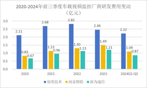 但这并不意味着公司放松了对研发的投入。2024年前三季度,锐明技术的研发费用达2.22亿元,同比增长25.13%,投入规模远超同行业的移为通信、鸿泉物联。