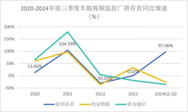 除了毛利率的下降,锐明技术的存货也存在增长过快的现象。2024年前三季度,公司存货达5.45亿元,同比增速高达97.06%,增速远高于同行业的移为通信、鸿泉物联。