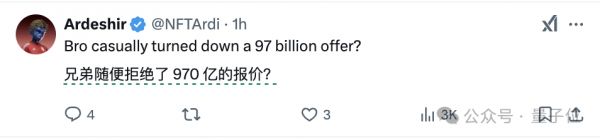 有的人对奥特曼的一口拒绝表示不理解,说“哥们,就这么随随便便拒绝970亿美元报价?”