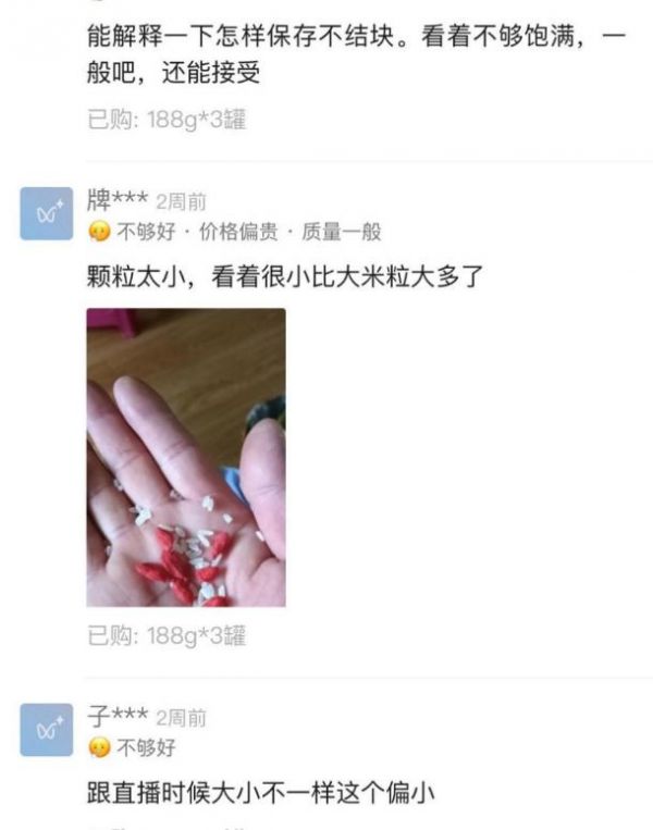 她卖过比直播时的size小很多的枸杞,被评论区吐槽。