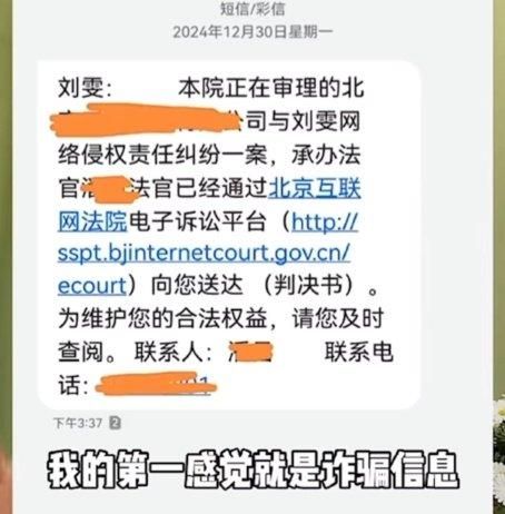 但是刘雯也说,她收到过全国通用的12368司法短信,她认为这是诈骗短信,所以压根儿没当回事。
