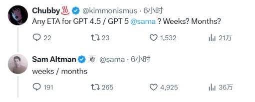 其实发帖交代计划这件事本身,就没怎么见奥特曼做过。甚至在评论区,有人问到GPT-4.5和GPT-5到底什么时候发布,奥特曼也没有回避,而是回复称前者几周内,后者数月内发布。