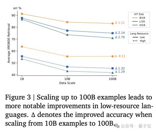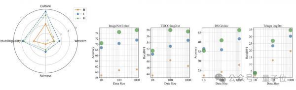 在英文世界之外的多元文化、多语言维度,1000亿规模数据集能更好覆盖长尾场景,由此带来明显性能提升。