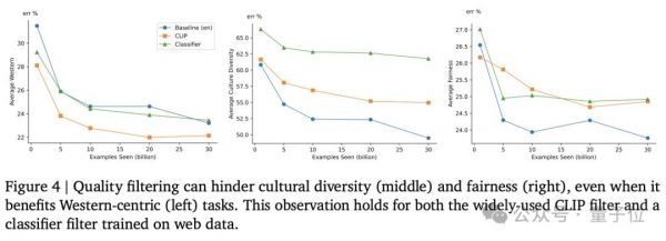 发现CLIP这类模型过滤筛选数据的过程会对无意中降低模型的文化多元性,在1000亿规模数据集上亦是如此。