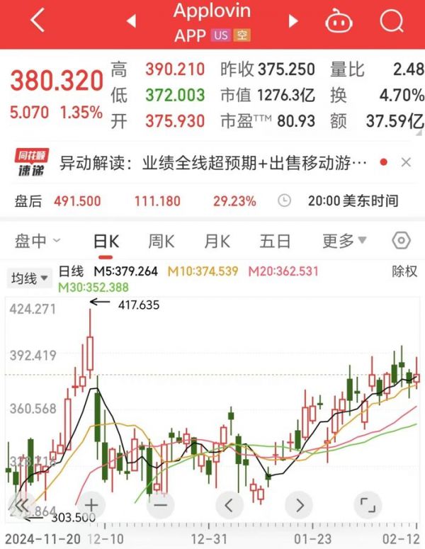 消息面上,AppLovin公布第四季度业绩,营收同比增长44%至13.7亿美元,超过市场预期的12.6亿美元;净利润5.99亿美元,同比暴增248%。