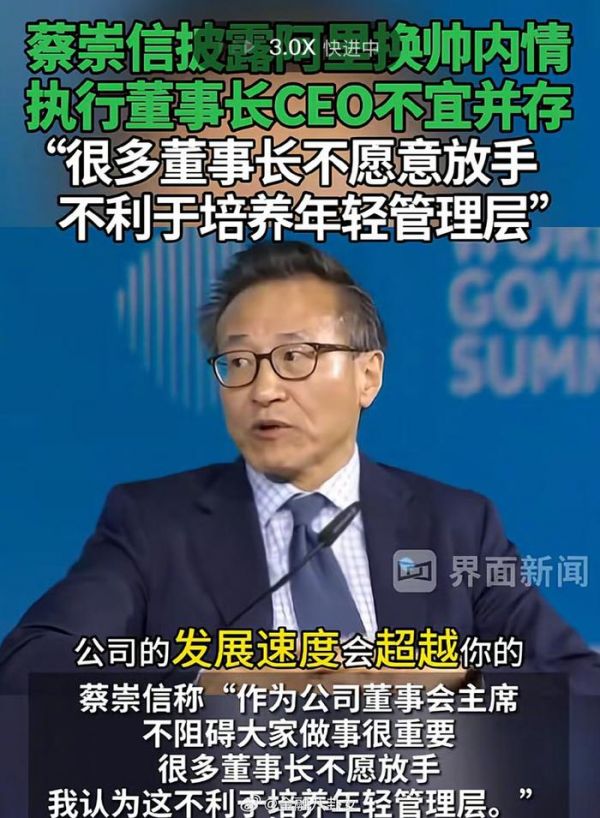 蔡崇信谈阿里换帅:执行董事长CEO不宜并存,很多董事长不愿意放手,不利于培养年轻管理层[并不简单]