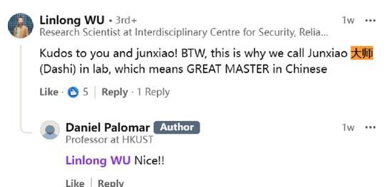 当Palomar在领英上发帖感叹Junxiao Song在DeepSeek的成就时,另一位前学生评论说,Junxiao Song曾被称为“大师”。Palomar说:“不知何故,DeepSeek吸引了最最优秀的一批人才”。