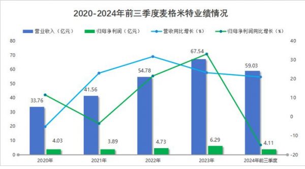 2024年前三季度,麦格米特实现营收59.03亿,同比增长21.06%;净利润4.11亿,同比下降14.82%,业绩表现承压。
