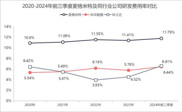 2020到2024年前三季度,麦格米特的研发费用率始终维持在10%以上,远超过科华数据、科士达等竞争对手。